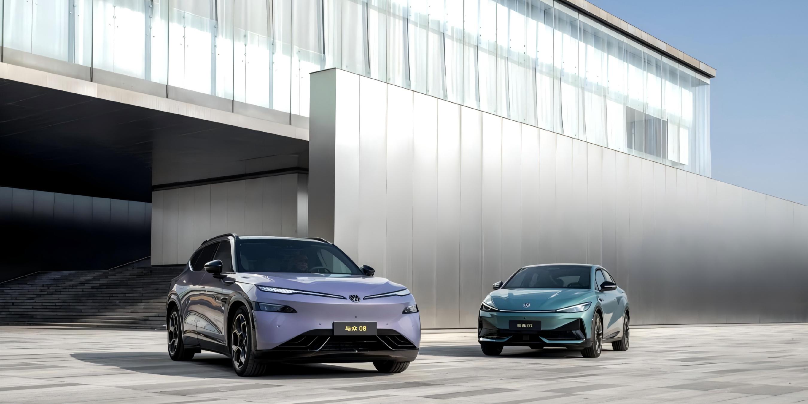 即将上市的与众08和与众B级轿车属于同一平台,这两款车是备受关注的大众和小鹏的合作结晶。与众07和升级改款的与众06则诞生在大众MEB平台上,有着同样的设计语言。