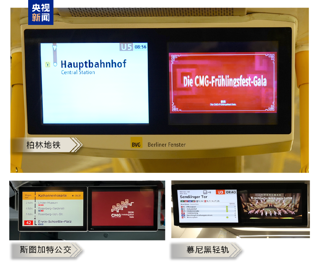 经济观察网 据央视新闻客户端消息,马年新春来临之际,当地时间2月6日,中央广播电视总台春晚宣传片首次在德国城市公共交通系统集中播出,同步在柏林、斯图加特和慕尼黑三大城市亮相。